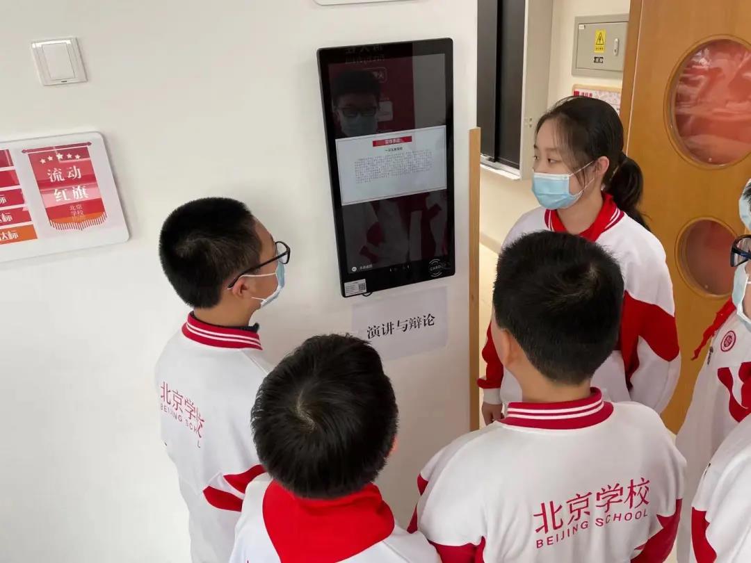 学生在电子屏观看《党的好儿子--雷锋》宣传片