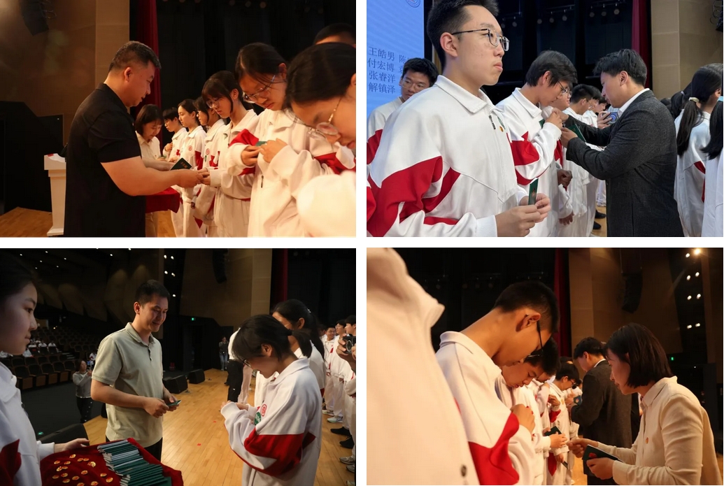 与会领导为新团员代表佩戴团员徽章、颁发团员证。