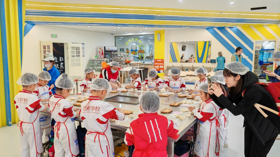 一年级以“探访百年名企,传承匠心精神”为主题,走进大兴区新时代文明实践基地——一轻食品集团北冰洋义利园区。在义利历史展厅,孩子们了解了北冰洋品牌的发展历史。在生产车间,孩子们纵览北冰洋汽水调制、罐装、塑封、成箱全流程,感受智能化、自动化生产线带来的视觉冲击,真切体会到了科技的神奇力量。孩子们亲自动手参与了面包制作,并品尝了北冰洋特色汽水。通过此次活动,孩子们收获了知识和技能,增强了对科学、劳动的热爱,更激发了对民族工业的自豪感。