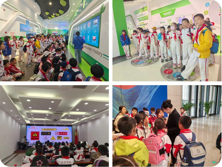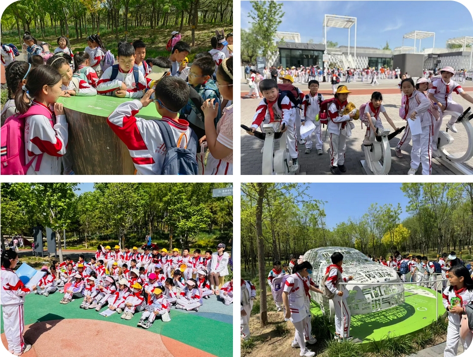 三年级开展了以“低碳研学”为主题的实践活动。同学们通过实地探访、互动体验,将课堂知识与生态实践相结合,在探索中感悟环保责任,在行动中播种绿色希望。7个班级前往温榆河公园未来智谷,通过沉浸式学习,深入了解了碳排放与生态平衡的关系,认识到碳中和目标对经济社会发展的深远影响;三3班前往中国工艺美术馆·中国非物质文化遗产馆,了解质朴的秸秆编织、精美的陶瓷烧制,在非遗技艺中探寻“取之自然、回归自然”的循环理念,激发了大家对绿色创新的思考;三7班、三8班走进通州区再生能源发电厂,通过观察垃圾如何变废为宝、转化为清洁能源,深刻体会到科技对环保的推动作用。三10班来到新型电力系统实验基地,在这里,风电、光伏等清洁能源的运作原理通过生动演示变得清晰可感,同学们在互动中领略科技魅力,认识到能源转型对可持续发展的重要性。此次三年级研学活动以学生全程自主策划参与的方法,让低碳理念从书本走向生活,让绿色责任从构想走向实践。未来,孩子们将携手同行,倡导绿色生活,建设低碳未来,以点滴行动汇聚生态保护的磅礴力量。
