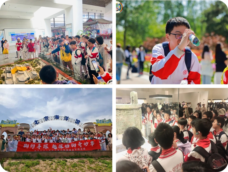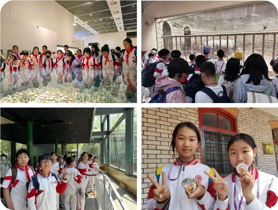 六1班走进中国园林博物馆,活动中,同学们先后探秘室内外展区,通过历代园林模型与文物,系统了解园林发展脉络与“天人合一”的造园智慧。他们分小组合作完成“园林景观 DIY”,在动手实践中感受园林与文学、艺术的交融,激发对传统文化的热爱与创新传承的责任感。六3班前往国家植物园,同学们漫步在碧桃园、海棠园、科普馆,从日常生活视角发现植物与当代生活的联系。他们还用诗歌对话春天,亲手制作干花或树叶书签作为纪念。此次活动不仅培养了同学们观察、实践和创作的能力,更增强了他们关注自然、热爱自然的情感。六4班走进国家博物馆,在“古代中国”展厅,同学们在讲解员的讲解下了解千年文明,文物背后的故事让孩子们惊叹于古人智慧。在“复兴之路”参观中,泛黄的照片、珍贵的文献串联起民族奋斗史诗,进一步激发了同学们的爱国情怀。他们分组进行不同主题的参观学习,领略人类文明发展过程中的不同侧面。六2班、六5班、六6班、六7班学生来到北京动物园,奔赴一场与动物的奇妙约会。在“看脚丫识动物”课程中,同学们探访雉鸡苑、熊山、狮虎山、象馆,通过观察动物足迹与足部特征,解码生物适应环境的生存智慧。同学们还亲手制作小动物勋章,每一笔勾勒、每一次粘贴,都是他们与动物世界亲密接触的印记。此次实践活动,让同学们不仅看见生物多样性之美,更在心中种下敬畏生命的种子。