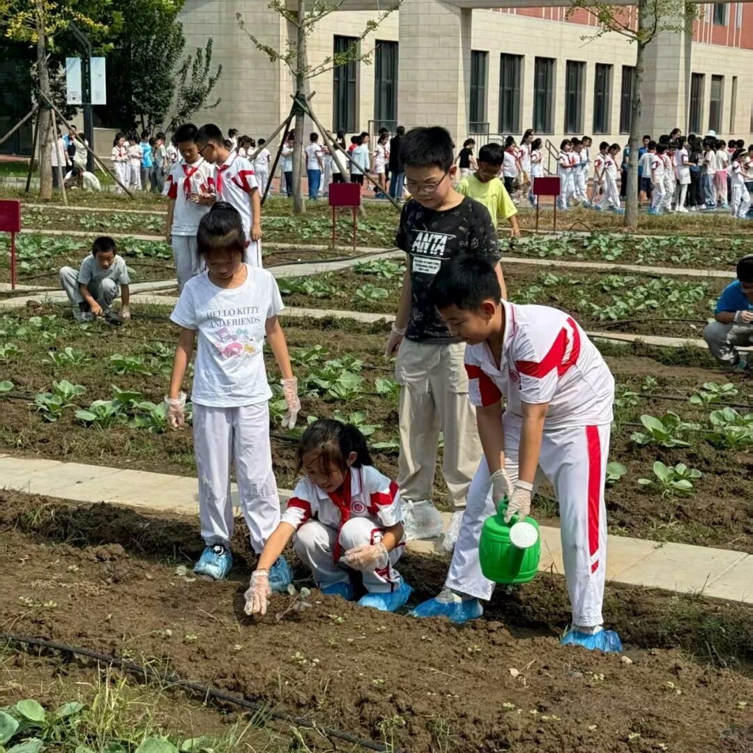 “先锋”小队负责松土,将硬实的土地变得松软;“绿色”小队负责移栽,一颗颗生菜、白菜的幼苗被小心翼翼地播撒到田垄里;“护苗”小队负责浇水,清澈的水流滋润着土壤,也滋润着每一位队员期待的心。