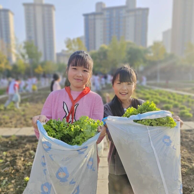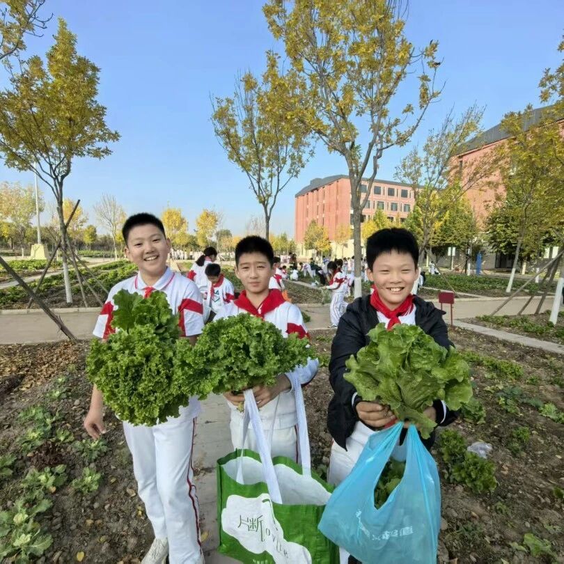 时光在队员们每日的悉心照料与期盼中悄然流逝。转眼间,曾经的幼苗已茁壮成长,绿油油的生菜、舒展着宽大叶片的白菜,迎来了最佳的采收时刻。