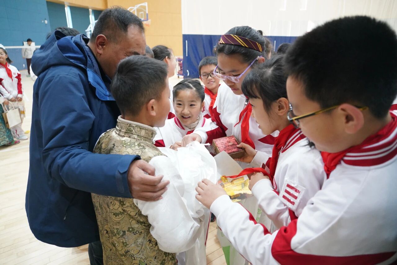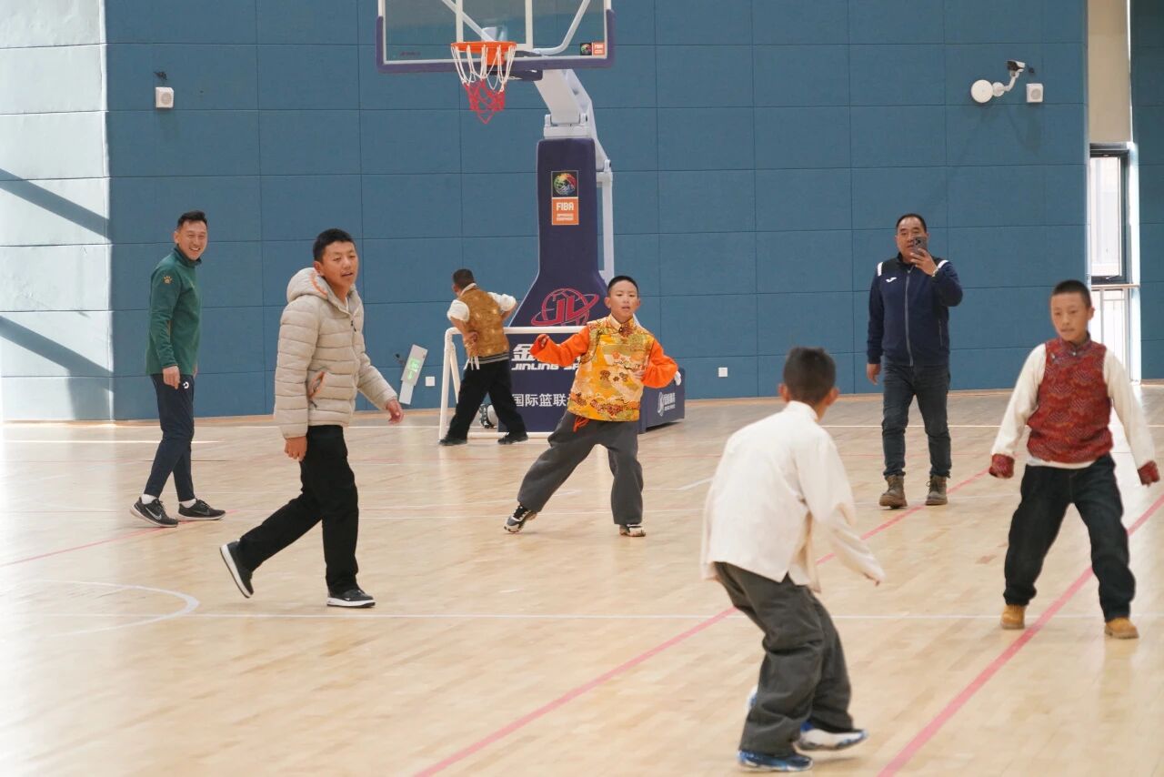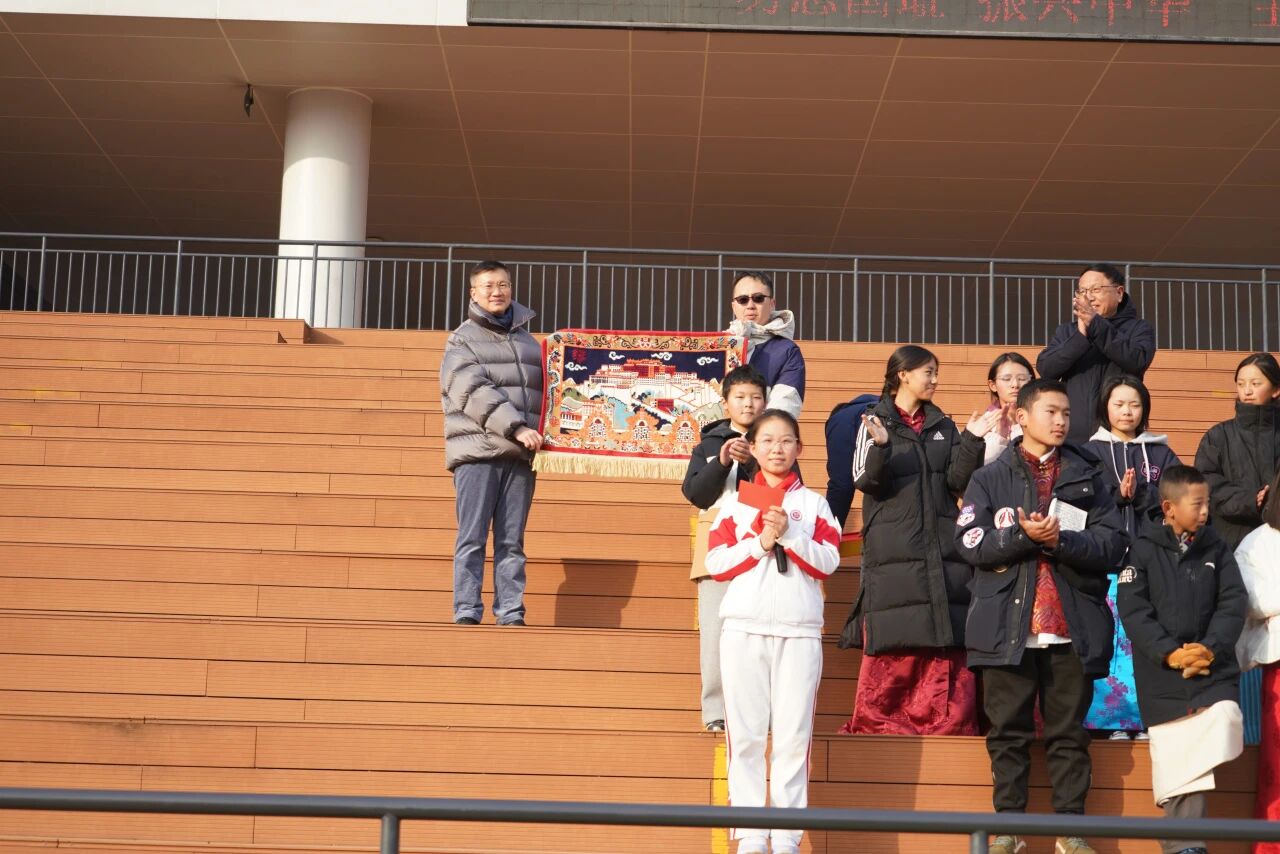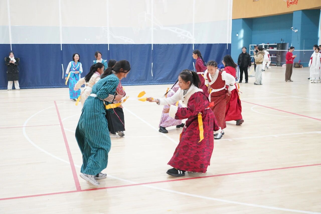 升旗仪式后,拉萨学生与小学五年级、初二年级的学生代表到共享区体育馆集合,互赠精心准备的小礼物。大家在老师的带领下玩腰旗橄榄球,组队踢球,学跳藏族舞蹈,共唱藏族歌曲,欢声笑语中缩短彼此间的距离。在“拿起纸笔、见字如面”互动环节,同学们写下心里话,互留联系方式,让这份跨越山海的稚嫩友谊在今后延续。