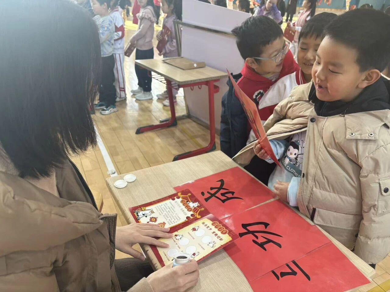 “马到成功・识字迎春” 里,孩子们随机翻开新年主题词卡,一个个生字都难不倒他们,他们认读的模样格外认真;“一马当先・诵读闯关” 环节,从 “新年幸运签” 中抽出课文,朗朗童声伴着年味,韵味十足,沉浸式感受表达的快乐。