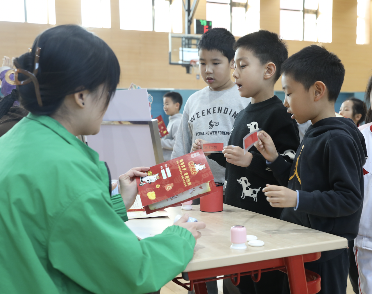 二年级的乐考以沉浸式闯关为核心,孩子们手持专属闯关卡,有序奔赴各个趣味关卡。每顺利通过一项挑战,就能收获一枚象征荣誉的印章。