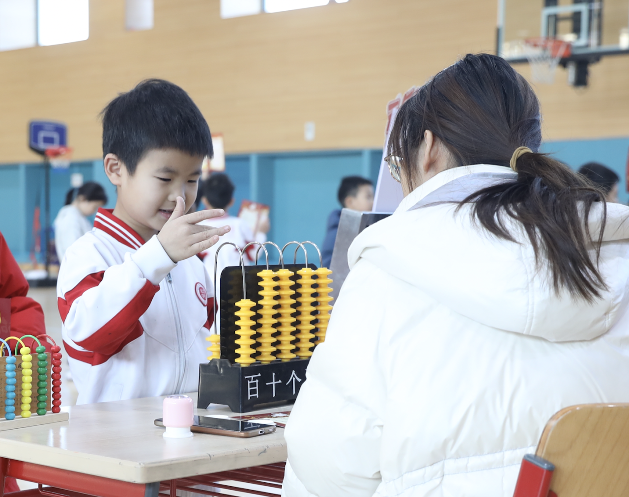 “马不停蹄・‘数’你最棒” 中,计数器成了好玩的玩具,孩子们熟练拨弄珠子,认读数字、讲解组成,在游戏中展现超强计算能力;“龙马精神・与‘时’俱进” 里,钟表操作趣味十足,选整时、拨指针、报时间,孩子们在游戏中轻松解锁生活小技能。