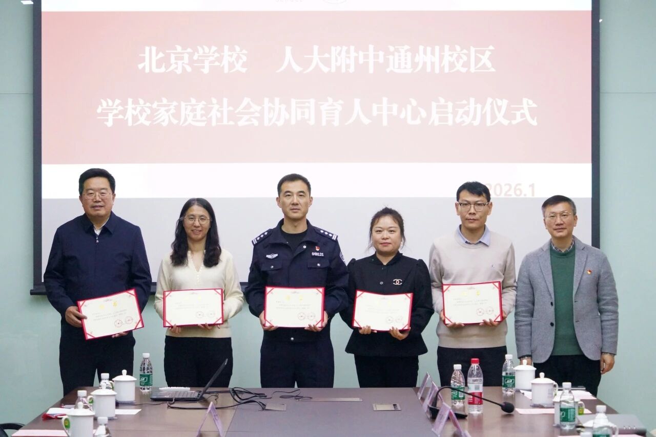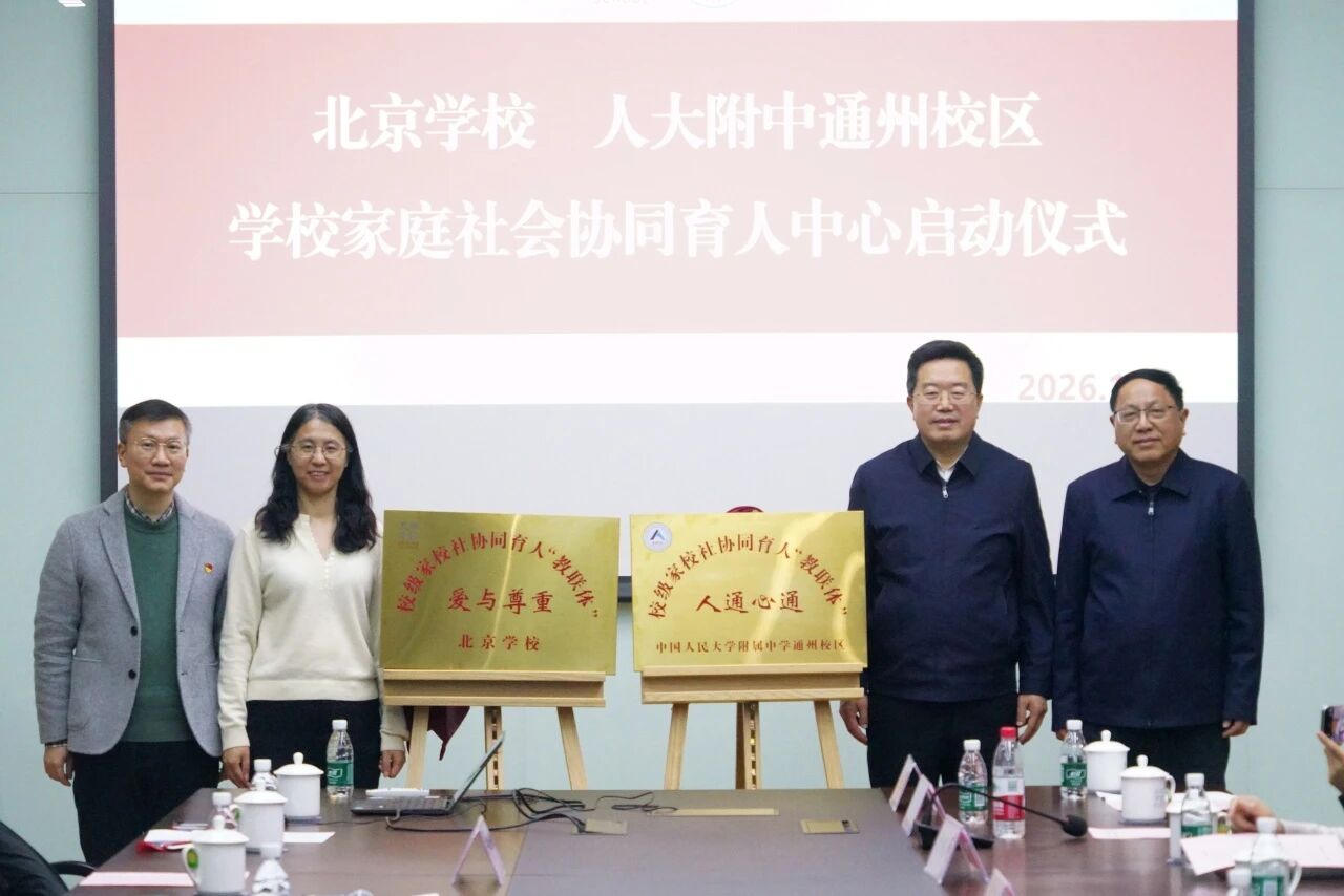 2026年1月22日下午,北京学校、人大附中通州校区学校家庭社会协同育人中心启动仪式在北京学校举行。此次启动仪式既是落实市区关于加强校家社协同育人成立教联体的统一部署,也是两校深化教育融合、整合优质资源的重要举措,更标志着两校在践行“学校主导、家庭参与、社会支持”育人理念上迈出了坚实一步。
