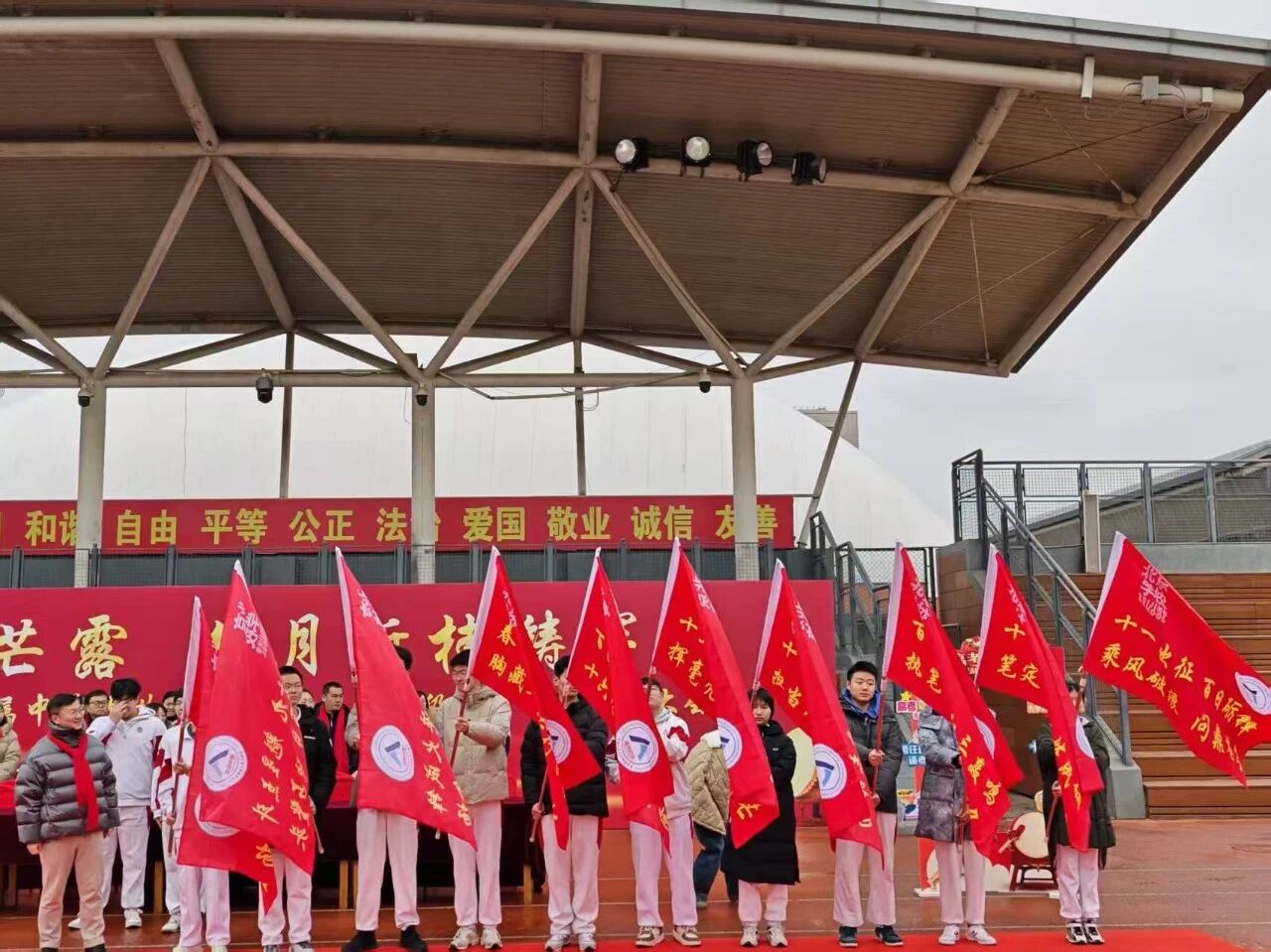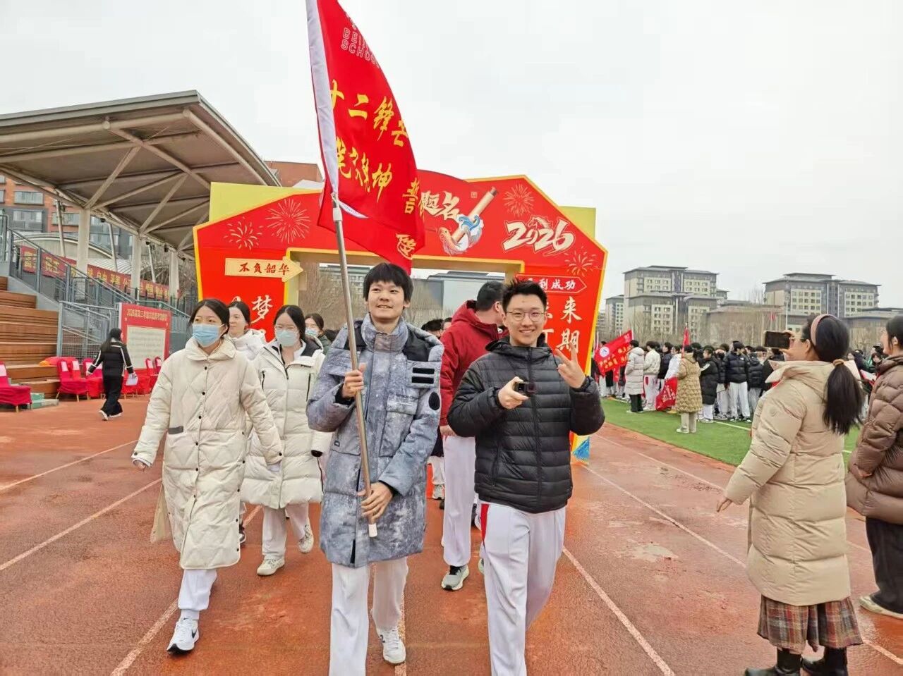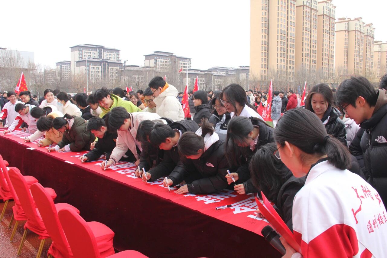 2026年2月27日上午,北京学校·中国人民大学附属中学通州校区2026届高三年级高考百日誓师大会“百日砺剑锋芒露 六月折桂铸辉煌”在人大附中通州校区操场隆重举行。