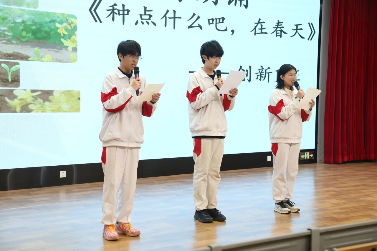 春分有诗意,少年有风采。分享环节后,各班学子带来了精心准备的节目展演,将活动氛围推向高潮。创新1班全体同学带来诗朗诵《种点什么吧,在春天》,在悠扬的诵读中,将“种下希望、种下知识、种下美好品格” 的期许娓娓道来,恰如这21天的习惯养成,是在青春的春天里埋下成长的种子,以坚持为雨露,静待未来枝繁叶茂。