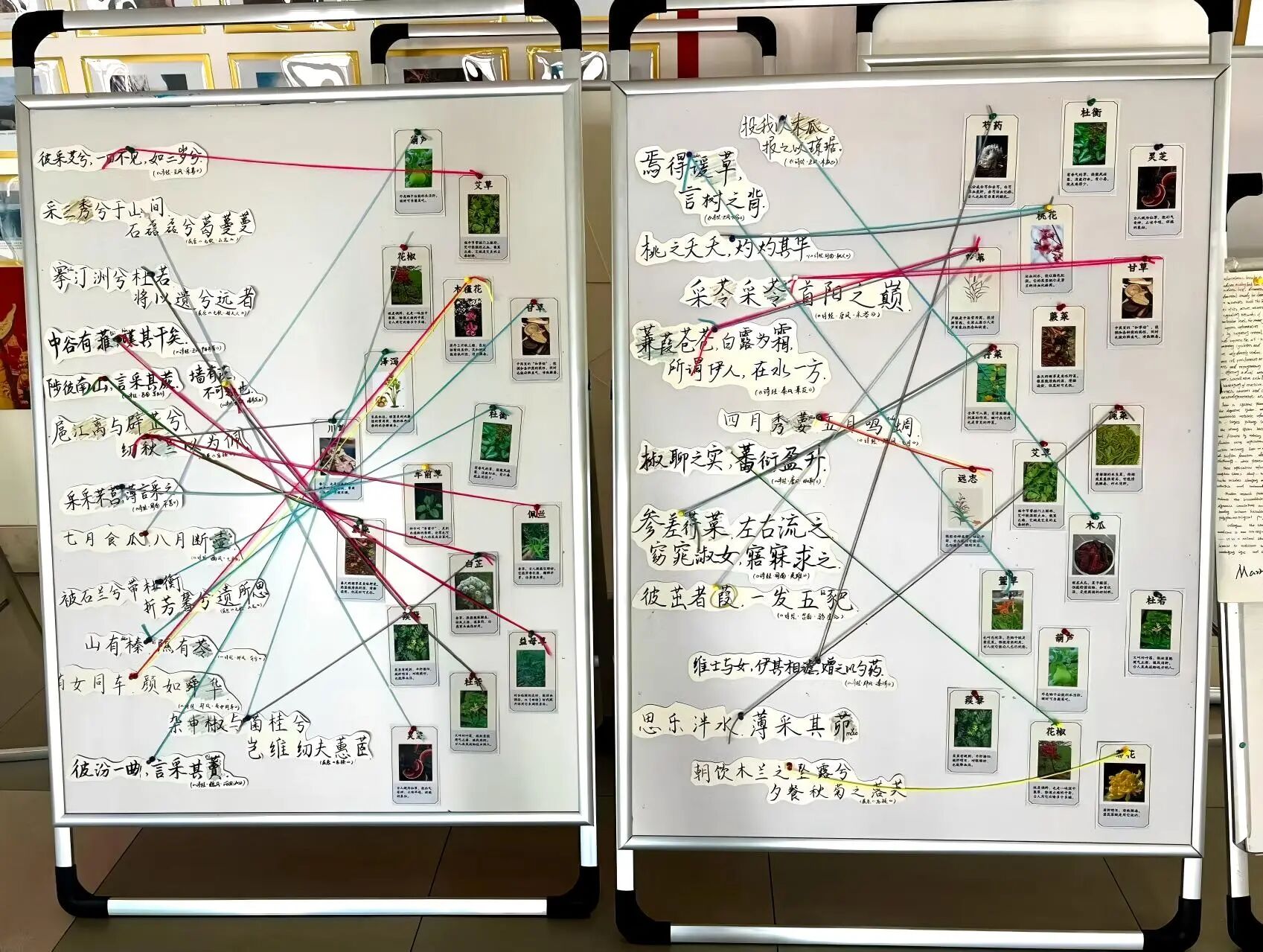 “风雅草木”点位,墨韵与药香共生。《诗经》《楚辞》中的草木芳华,皆化作眼前可触可感的本草真容——“蒹葭苍苍,白露为霜”的芦根清润,“参差荇菜,左右流之”的荇菜鲜嫩,“扈江离与辟芷兮,纫秋兰以为佩”的白芷芬芳……学子们沉浸式参与趣味连连看互动,于字句之间溯源草木,于配对之中联结诗韵与药理,在语文与本草的碰撞交融里,体悟传统文化的诗性之美与草木智慧。