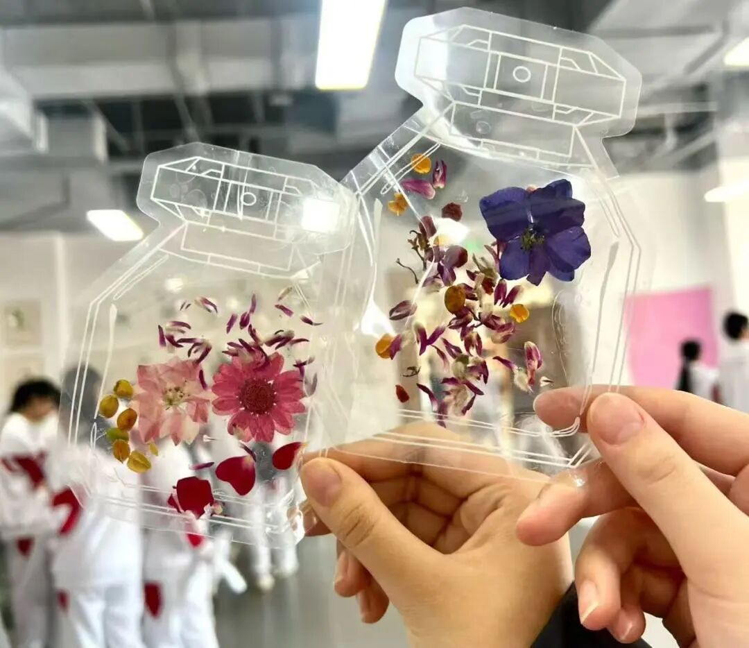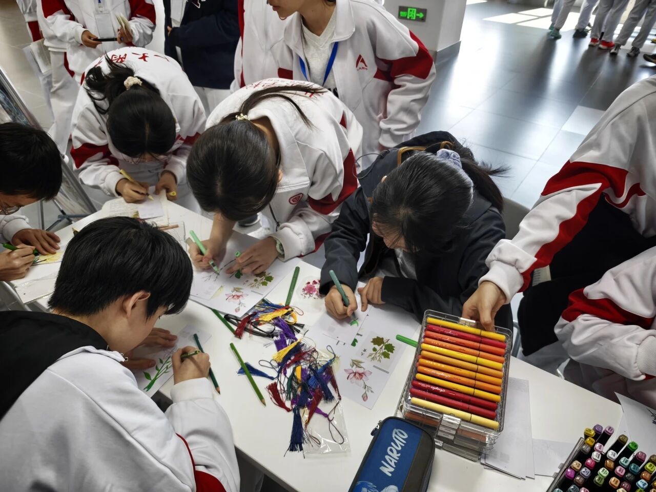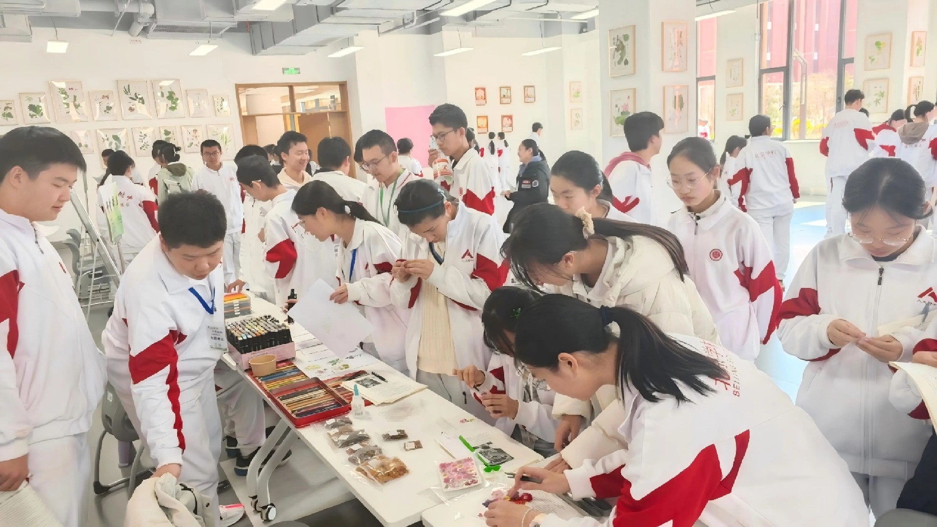 “丹青本草”点位,笔底生花,意趣盎然。学子们以笔为媒,以心为墨,或手绘本草真容,勾勒花叶脉络;或制作干花书签,定格草木清姿,在笔墨丹青的创作中,将自然之灵与审美之韵相融,让本草之美在艺术创作中得以延续与升华。
