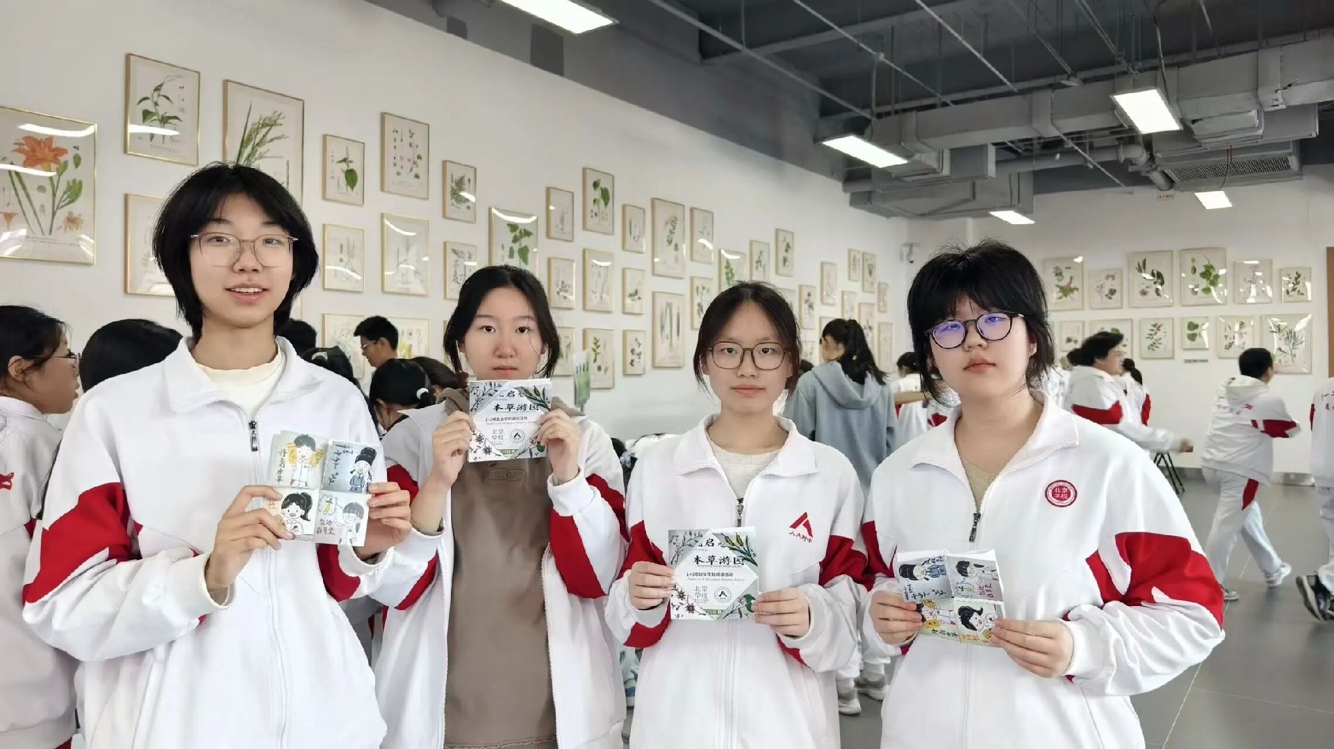 “智趣百草堂”前,人声鼎沸,雅趣盎然。融合地理、历史、化学等多学科的本草知识问答,引学子争相竞答、踊跃闯关。这些题目皆源自学子们每日十分钟的全学科阅读积累,大家在欢声笑语中检验所学、查漏补缺、拓展视野,于潜移默化中夯实知识根基。成功解锁全部关卡的学子,更收获了由同窗亲手设计的限量版本草养生图鉴,既是荣誉的见证,亦是本草文化的传承。
