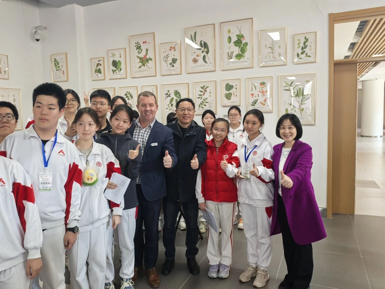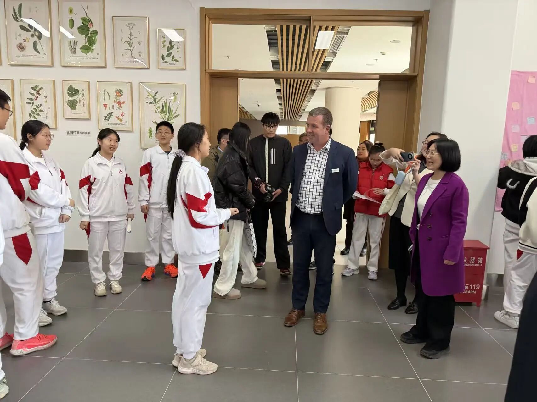 当日校园,新西兰以琳国际学校及国际教育交流协会代表团一行来校访问,沉浸式参与手绘书签、干花制作等活动,亲身感受中华本草文化的独特魅力。代表团对我校以跨学科阅读为抓手,以实践体验为路径,让传统文化在校园中“活起来、传下去”的创新教育模式,给予了高度赞誉与充分肯定。