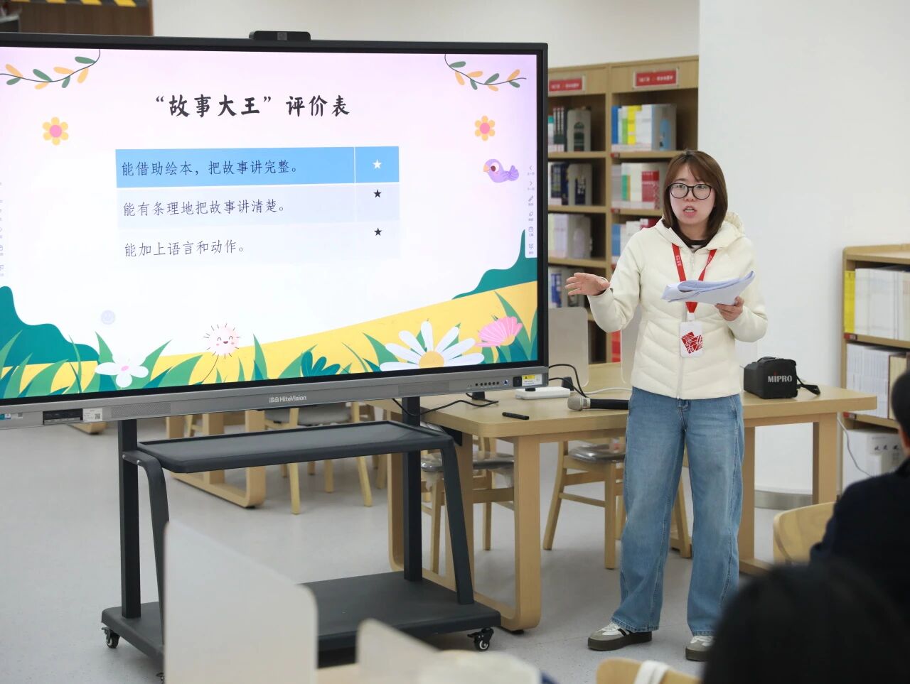 李夏老师分享了《林汉达历史故事集》教学设计,石硕老师分享了《母鸡萝丝去散步》教学设计。王林教授结合两个课例,与老师们展开深度对话。围绕绘本教学如何挖掘画面价值、文史类书籍如何梳理历史脉络等问题,大家各抒己见,思维的火花不断迸发。