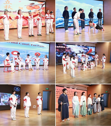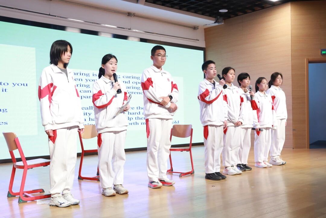七年级的Walk into Chinese Landmarks(《走进中国地标》)脱口秀、九年级(1+3项目)的Battle of Luding Bridge(《飞夺泸定桥》)读者剧场、十年级(IEC项目)的A Journey Through Shaoxing: Four Lessons for Growing Up(《绍兴成长之旅》)演讲以及创新书院九年级的Rise with the Cockcrow(《闻鸡起舞》)舞台剧,则体现了高年级学生对中华文化更深刻的理解与思辨。八年级以A Helping Hand’s Worth More Than Gold(《助人为乐胜千金》)演讲收尾,传递了温暖人心的价值观。