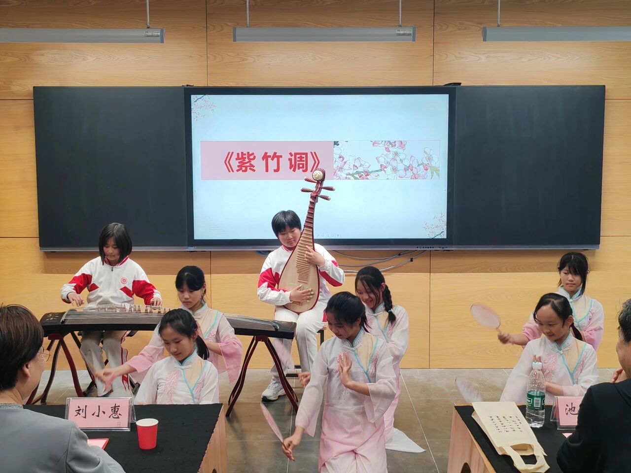 活动现场,古韵悠扬。李绪杰老师抚琴一曲《关山月》,弦动人心。五2班同学合奏《紫竹调》,童趣盎然。郭振宇老师以《艺术家谈艺术》为题,分享制砚心得,勉励学子不畏艰辛、勇于突破。