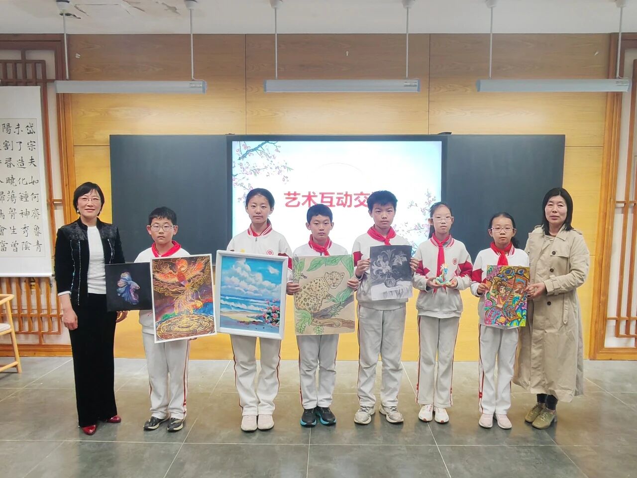 在互动点评环节,艺术家们分别对书法、国画、综合三个组的学生作品逐一指点,肯定创意、点拨技法,同学们受益匪浅。