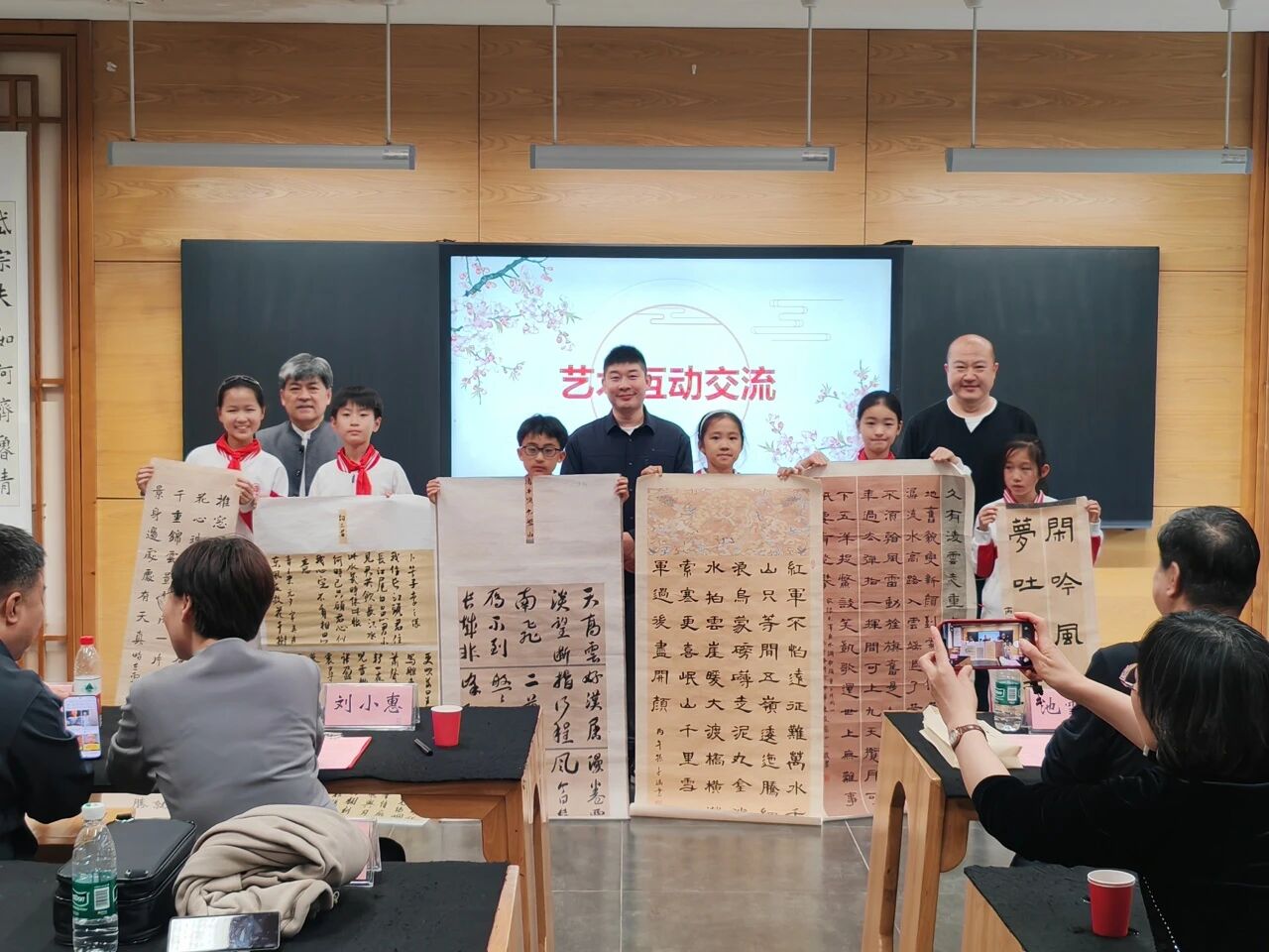 刘小惠校长致欢迎辞。她表示,海棠雅集是学校传承文化、以美育人的特色品牌,感谢民盟艺术家们以书画为桥、以艺术为媒,让中华优秀传统文化浸润童心,为同学们打开亲近经典的窗口。